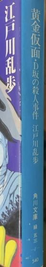 角川文庫、江戸川乱歩短編集。「黄金仮面」「何者」「D坂」「心理試験」の4編を収録。解説・高木彬光。