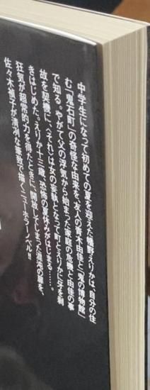 「JUNE」でデビュー、2025年現在も主にBL系作家として活躍する佐々木禎子が、キャリア初期に同レーベルから出した2作のホラー小説のうちの、先に出た作品。